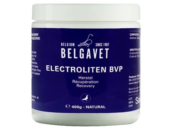 BelgaVet Electroliten BVP 400 g to preparat elektrolitowy dla gołębi, polecany szczególnie po ciężkim locie, wysiłku, stresie oraz odwodnieniu. Pomaga uzupełnić poziom soli mineralnych w organizmie i wspiera prawidłową gospodarkę wodno-elektrolitową.