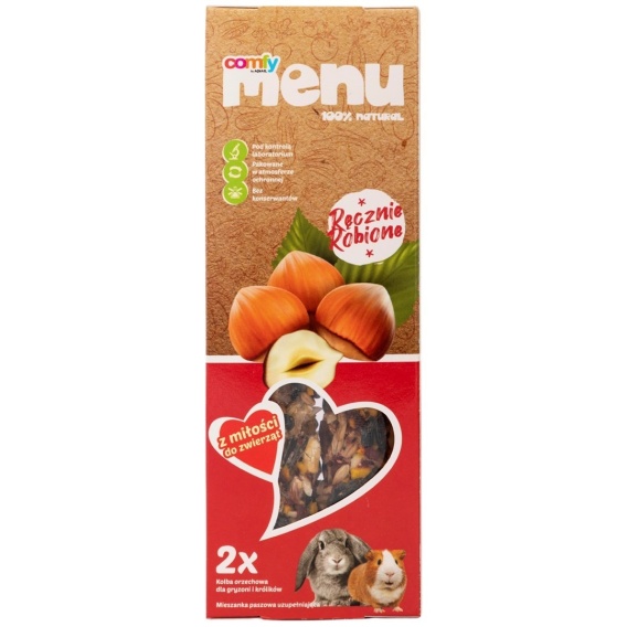 Kolby orzechowe Comfy Menu to wyjątkowo aromatyczna i pożywna przekąska dla gryzoni i królików, które kochają naturalne smaki i chrupanie z przyjemnością 🐭🐰