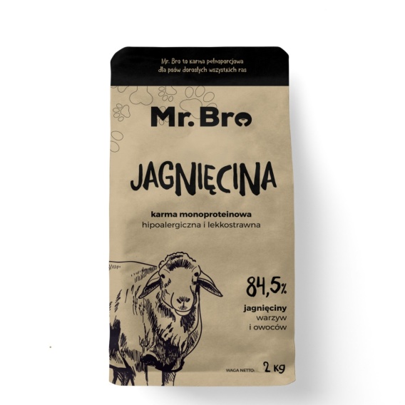 Mr.Bro Monoproteinowa Sucha Karma Dla Psów Dorosłych Jagnięciną 2kg