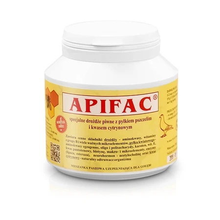 Preparat łączy w sobie wartości odżywcze drożdży piwnych oraz niezwykle bogaty biologicznie pyłek kwiatowy, będący naturalnym produktem pszczelim. Dzięki temu APIFAC działa wzmacniająco, regenerująco i wspomagająco na ogólną kondycję ptaków.