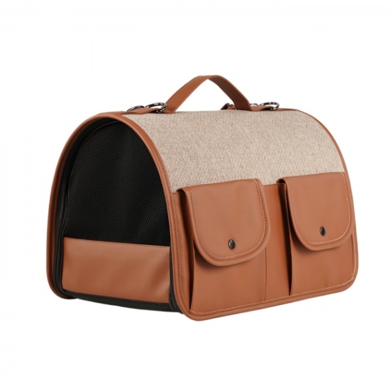 Recobed Transporter beżowo brązowy – Elegancki i bezpieczny transporter z ekoskóry dla małych psów i kotów (do 10 kg)