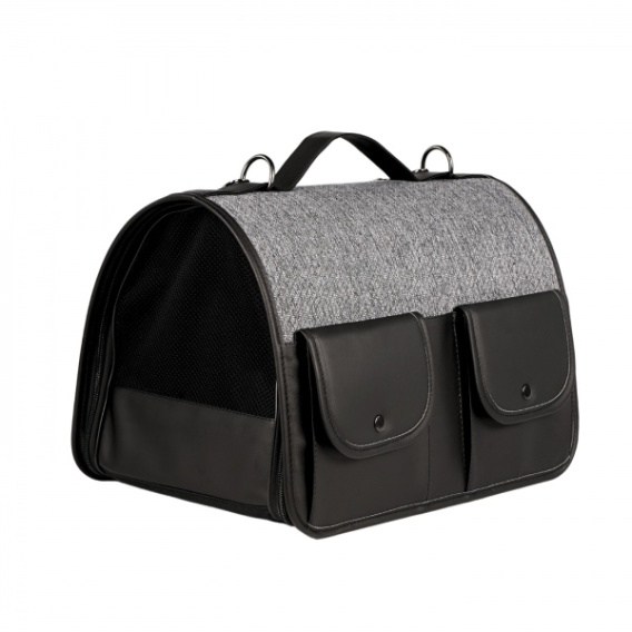 Recobed Transporter czarno szary – Elegancki i bezpieczny transporter z ekoskóry dla małych psów i kotów (do 10 kg)