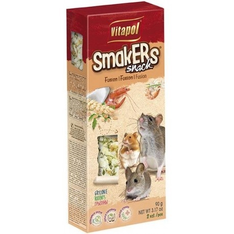 Smakers® z krewetkami to wyjątkowa, białkowa przekąska dla wszystkożernych gryzoni takich jak chomiki, myszy, szczury i myszoskoczki. Połączenie aromatycznego kokosa, pietruszki i suszonych krewetek tworzy smakowitą i zdrową kompozycję, która wspiera prawidłowe żywienie i kondycję zwierząt.