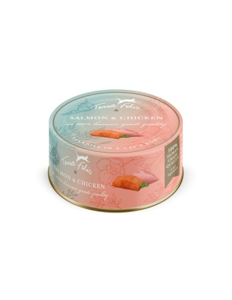 Terra Felis - Łosoś z Kurczakiem karma dla kotów 90% świeżego mięsa z mięśni i wartościowych podrobów bez zbóż 80g