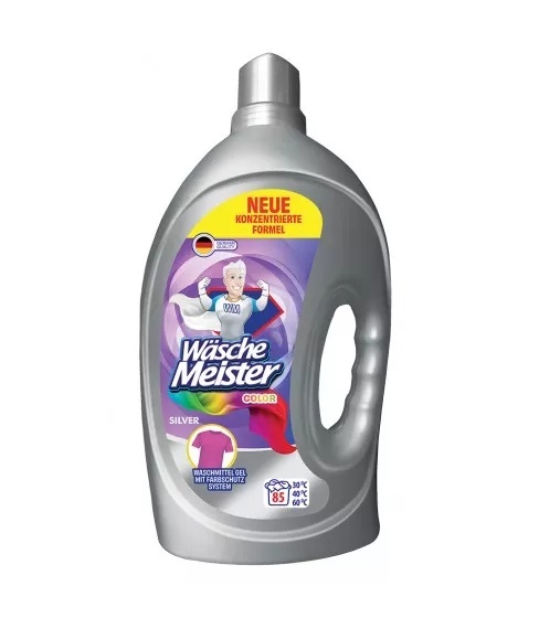 WäscheMeister Silver Color to skoncentrowany żel stworzony specjalnie do prania kolorowych tkanin. Jego formuła chroni intensywność barw, zapobiega blaknięciu i jednocześnie skutecznie usuwa zabrudzenia – nawet te najbardziej uporczywe 🎨✨